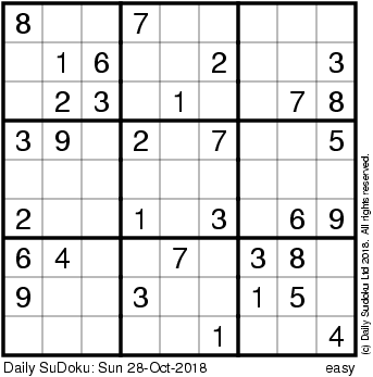 The Daily SuDoku: Sun 28-Oct-2018