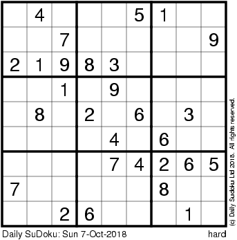 The Daily SuDoku: Sun 7-Oct-2018