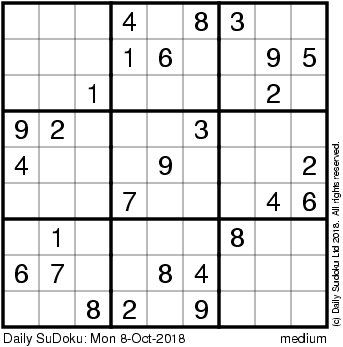 The Daily SuDoku: Mon 8-Oct-2018