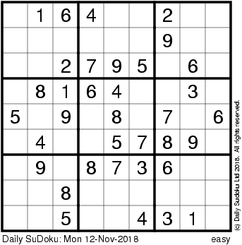 The Daily SuDoku: Mon 12-Nov-2018