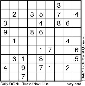 The Daily SuDoku: Tue 20-Nov-2018