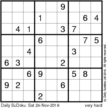 The Daily SuDoku: Sat 24-Nov-2018