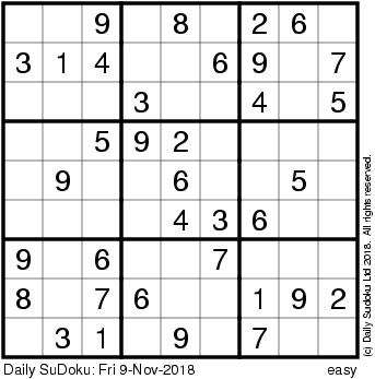 The Daily SuDoku: Fri 9-Nov-2018