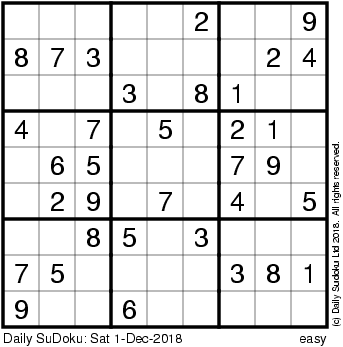 The Daily SuDoku: Sat 1-Dec-2018