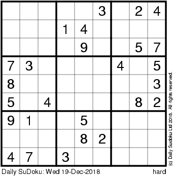 The Daily SuDoku: Wed 19-Dec-2018