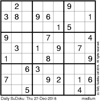 The Daily SuDoku: Thu 27-Dec-2018