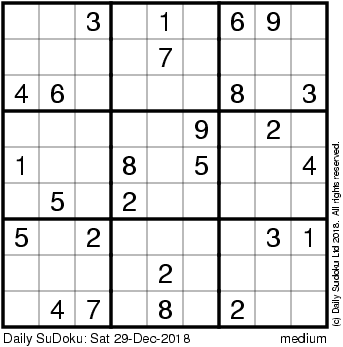 The Daily SuDoku: Sat 29-Dec-2018