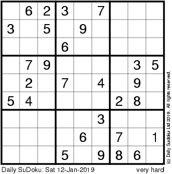 The Daily SuDoku: Sat 12-Jan-2019