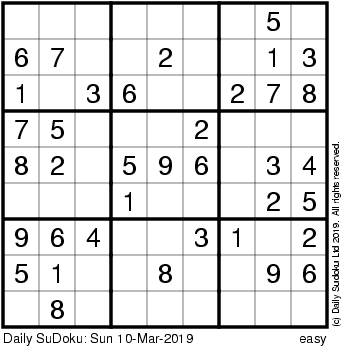 The Daily SuDoku: Sun 10-Mar-2019