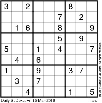 The Daily SuDoku: Fri 15-Mar-2019