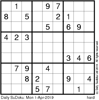 The Daily SuDoku: Mon 1-Apr-2019