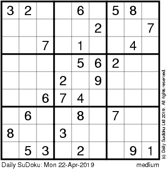 The Daily SuDoku: Mon 22-Apr-2019