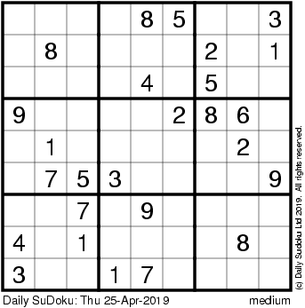 The Daily SuDoku: Thu 25-Apr-2019