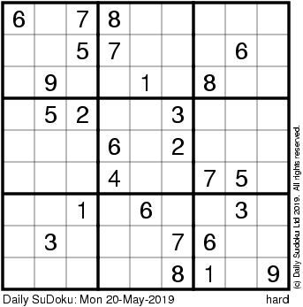 The Daily SuDoku: Mon 20-May-2019