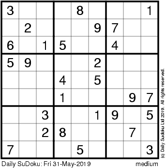 The Daily SuDoku: Fri 31-May-2019