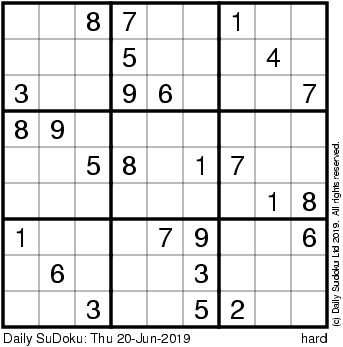 The Daily SuDoku: Thu 20-Jun-2019