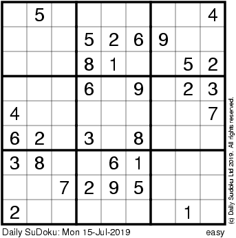 The Daily SuDoku: Mon 15-Jul-2019