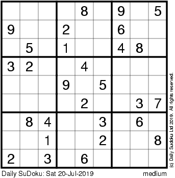 The Daily SuDoku: Sat 20-Jul-2019