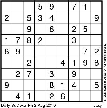 The Daily SuDoku: Fri 2-Aug-2019