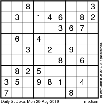 The Daily SuDoku: Mon 26-Aug-2019