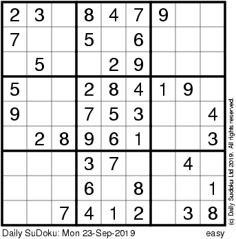 The Daily SuDoku: Mon 23-Sep-2019