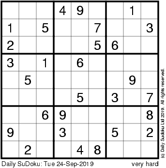 The Daily SuDoku: Tue 24-Sep-2019
