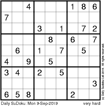 The Daily SuDoku: Mon 9-Sep-2019