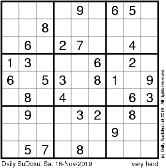 The Daily SuDoku: Sat 16-Nov-2019