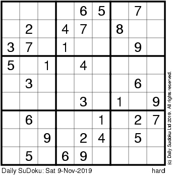 The Daily SuDoku: Sat 9-Nov-2019