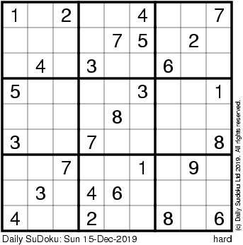 The Daily SuDoku: Sun 15-Dec-2019