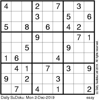 The Daily SuDoku: Mon 2-Dec-2019
