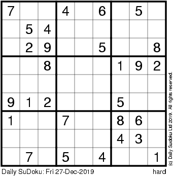 The Daily SuDoku: Fri 27-Dec-2019