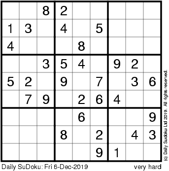 The Daily SuDoku: Fri 6-Dec-2019