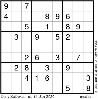 The Daily SuDoku: Tue 14-Jan-2020
