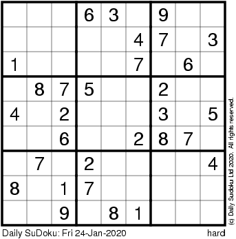 The Daily SuDoku: Fri 24-Jan-2020