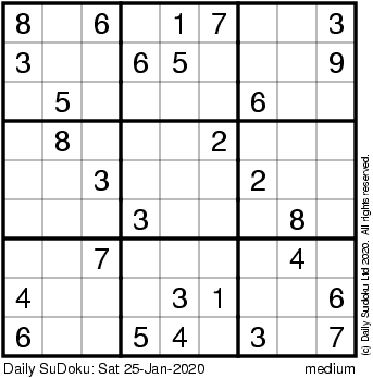 The Daily SuDoku: Sat 25-Jan-2020
