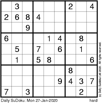 The Daily SuDoku: Mon 27-Jan-2020