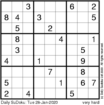 The Daily SuDoku: Tue 28-Jan-2020