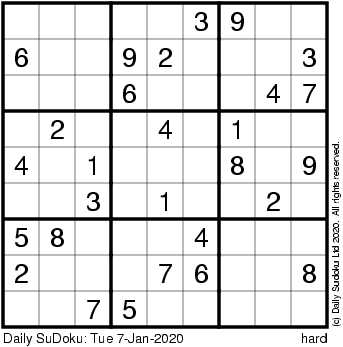 The Daily SuDoku: Tue 7-Jan-2020