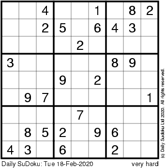 The Daily SuDoku: Tue 18-Feb-2020