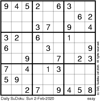 The Daily SuDoku: Sun 2-Feb-2020