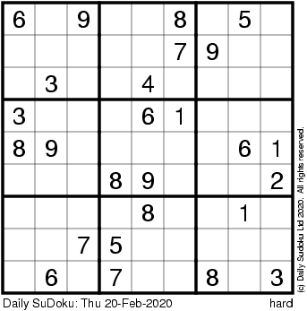 The Daily SuDoku: Thu 20-Feb-2020