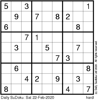 The Daily SuDoku: Sat 22-Feb-2020