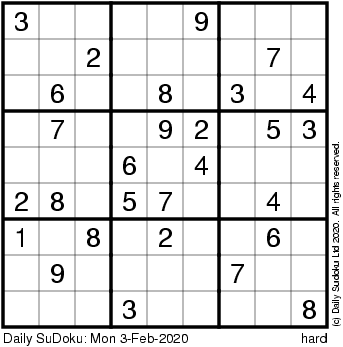 The Daily SuDoku: Mon 3-Feb-2020