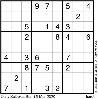The Daily SuDoku: Sun 15-Mar-2020