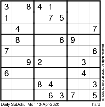 The Daily SuDoku: Mon 13-Apr-2020