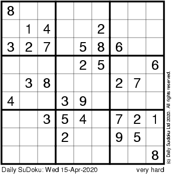 The Daily SuDoku: Wed 15-Apr-2020