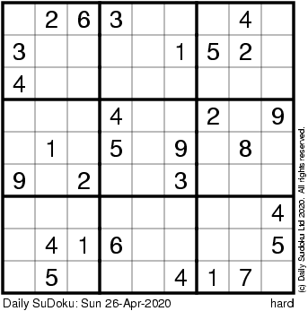 The Daily SuDoku: Sun 26-Apr-2020