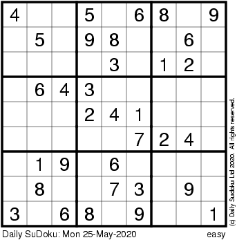 The Daily SuDoku: Mon 25-May-2020