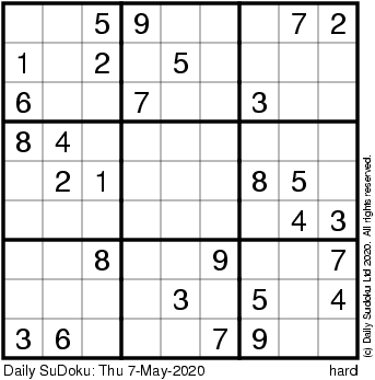 The Daily SuDoku: Thu 7-May-2020